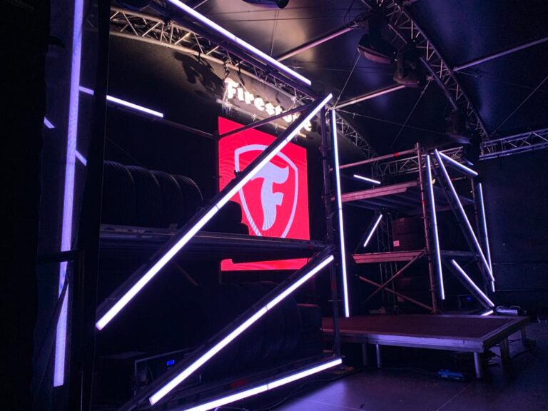 Brand Integration: Firestone’s branding needed to be visually prominent without overshadowing the artists. We incorporated custom lighting elements to complement the brand identity while keeping the focus on performances.