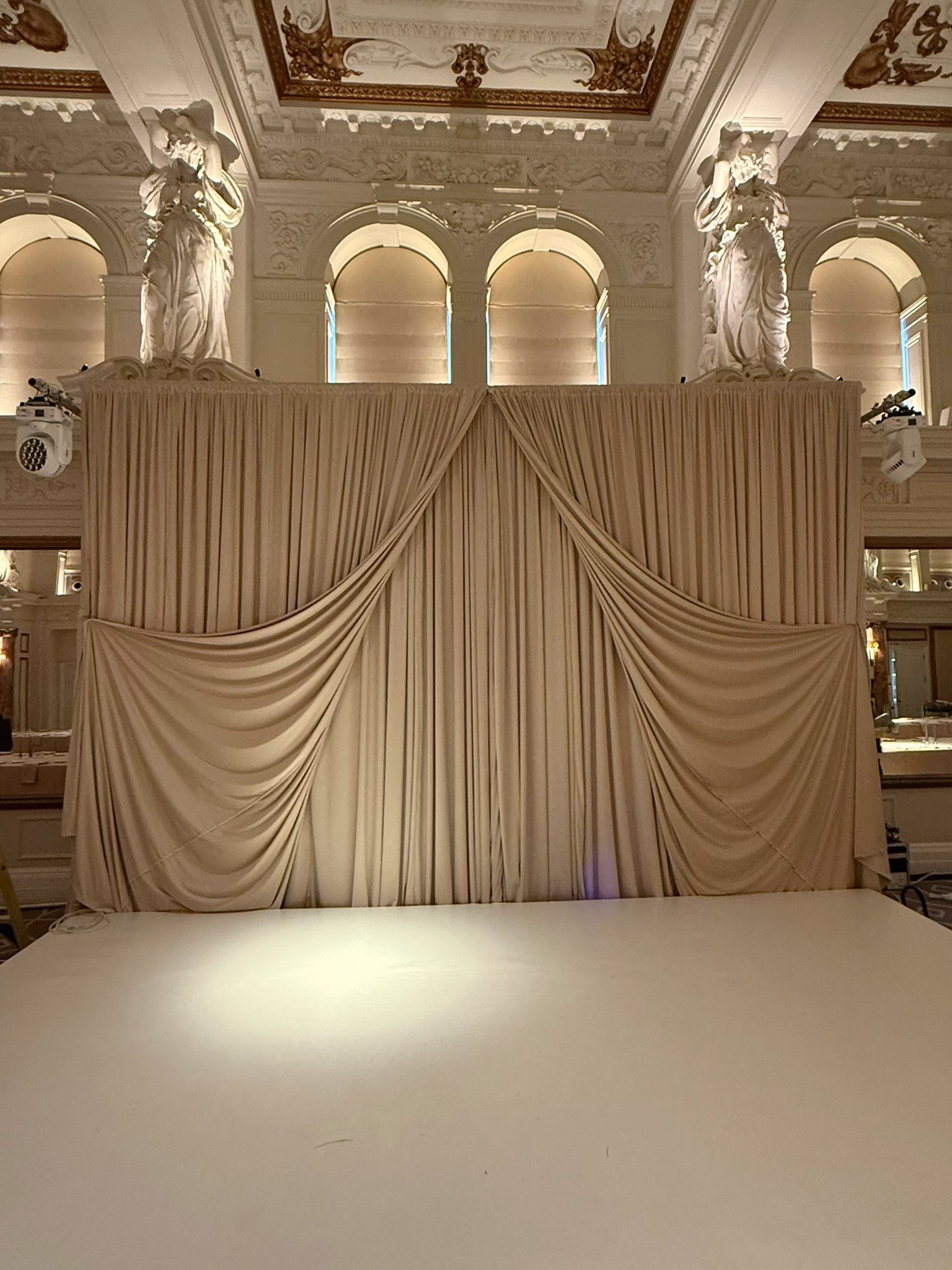 Fusion Sound & Light can supply both the draping fabrics and the pipe and base rigging system required for installation, ensuring a complete and professional setup.